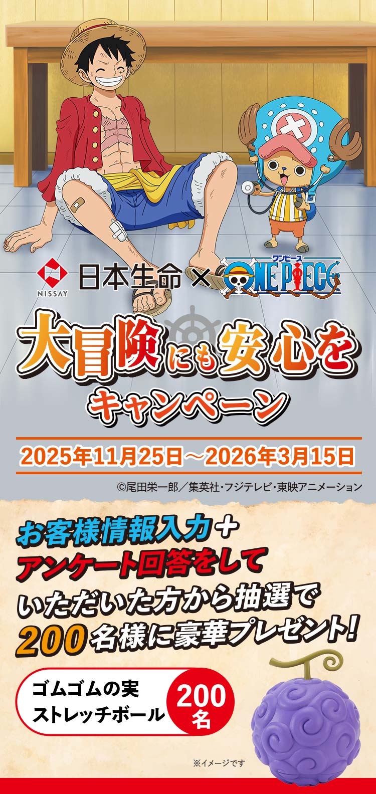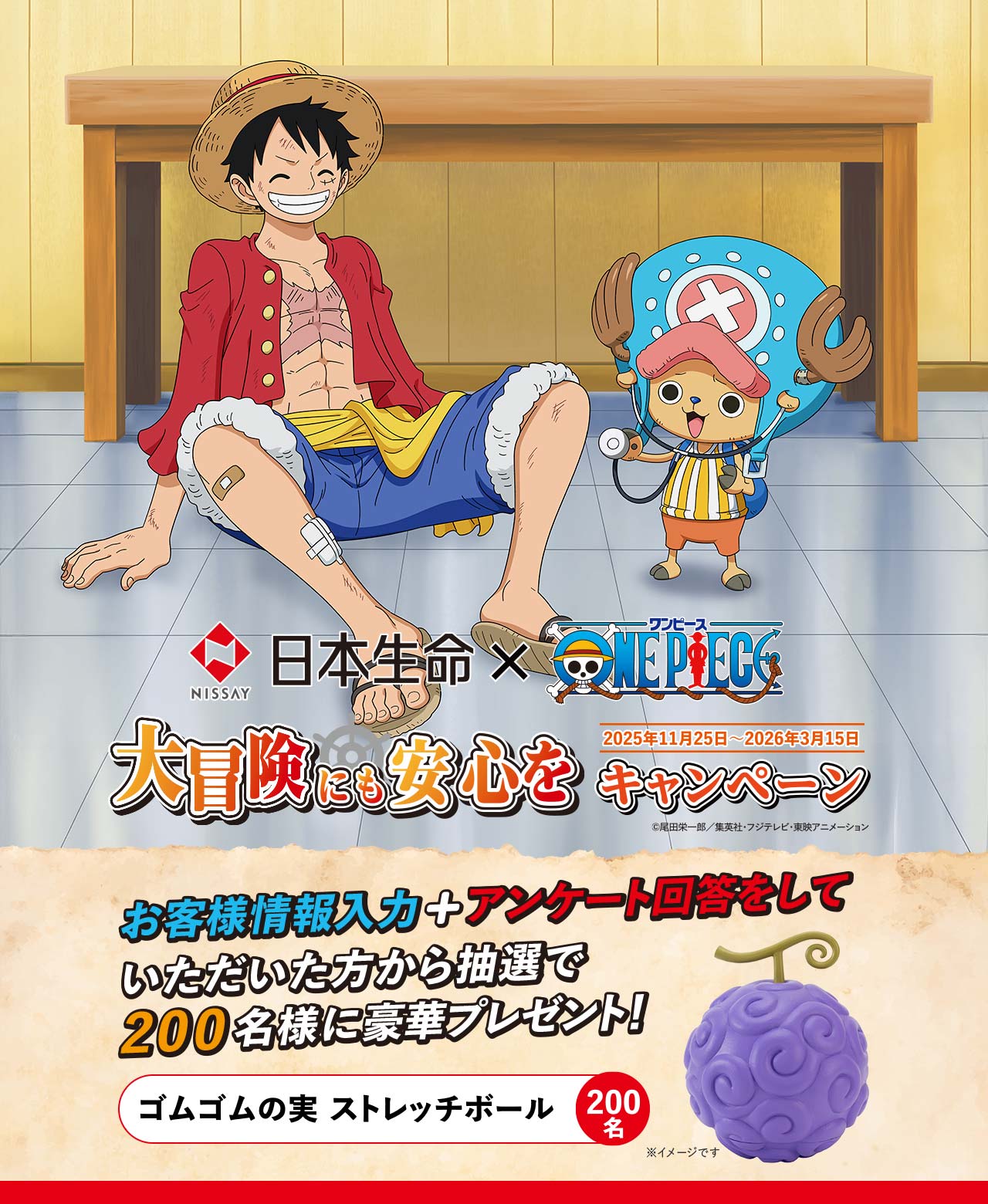- ■ご本人様情報の入力とアンケートの回答をしていただいた方の中から、抽選で200名様に「ゴムゴムの実 ストレッチボール」をプレゼントいたします。